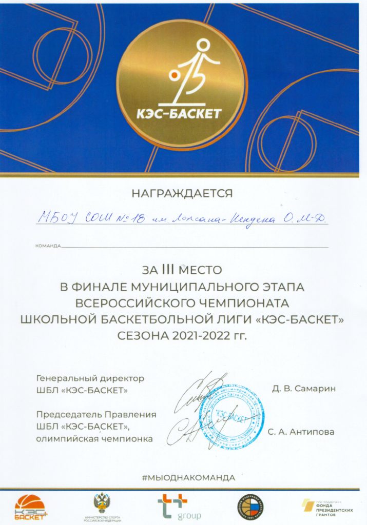 12 декабря в спортивном комплексе им. «Ивана Ярыгина» состоялся муниципальный этап Всероссийского чемпионата школьной баскетбольной лиги » КЭС- БАСКЕТ — 2021-2022″. В ходе соревнований участники продемонстрировали ловкость, быстроту, выносливость и командный дух. По итогам соревнований места распределились следующим образом: среди девушек заняли 3 место, среди юношей — 3 место. Победители и призёры награждены кубками и грамотами. Мы поздравляем ребят! Играйте и любите спорт в целом и баскетбол в частности!