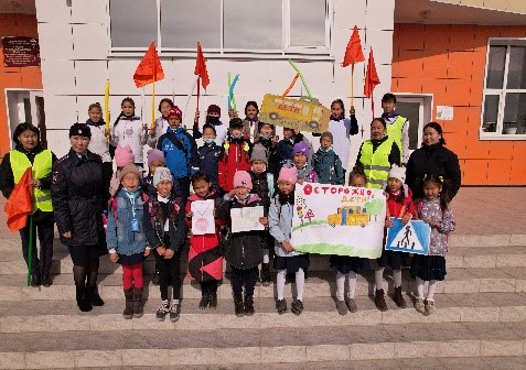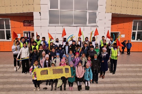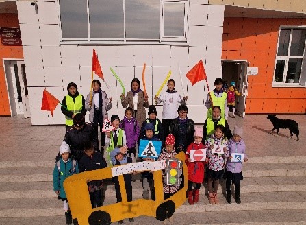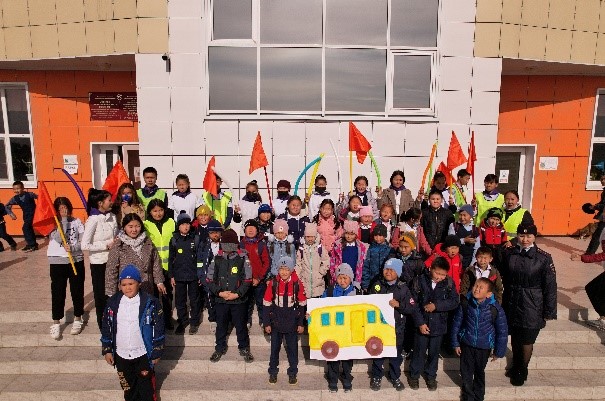 В мероприятии приняли участие 3 «г», 4 «д», 3 «з», 4 «г», 4 «б», 3 «д» классы, организаторы-преподаватели: старшие вожатые, заместитель директора по безопасности и ППВ А.А.Торештей и приглашенный инспектор по пропаганде безопасности дорожного движения С. О. Хуурак, а также классные руководители.