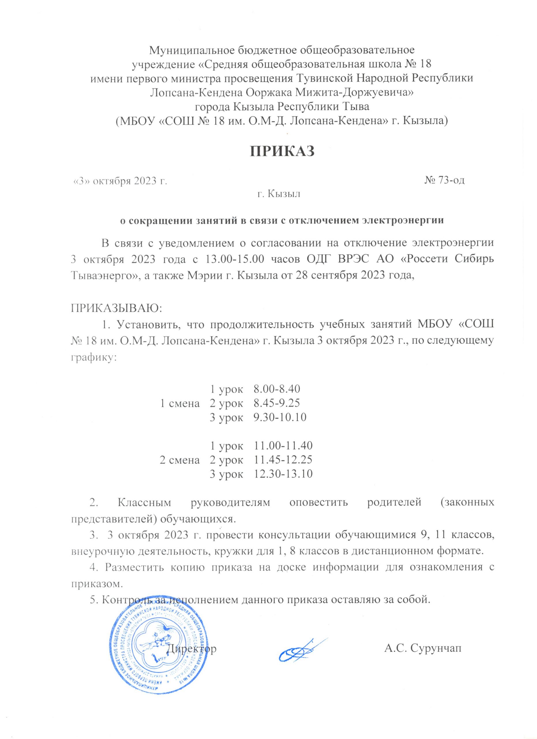 Приказ Об организации работы по переходу на безбумажный вариант обучающихся МБОУ СОШ N18 г.Кызыла в 2023-2024 учебном годуСкачать